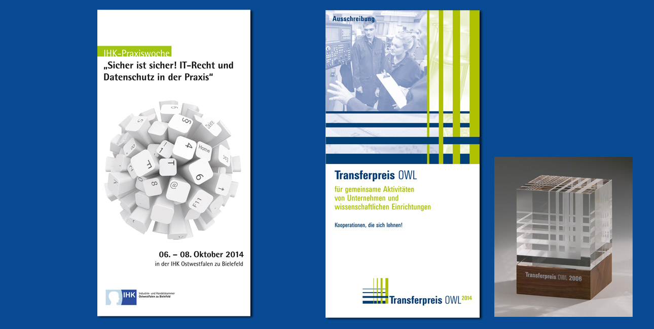 Für die IHK gestalte ich seit vielen Jahren diverse Drucksachen und Medien. Vor allem im Bereich